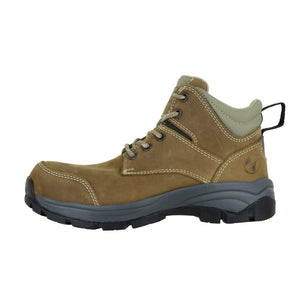 Calzado de seguridad tipo borceguí, con puntera de protección (PP). Especial para la anatomía del pie de la mujer. Es una bota ligera, flexible y cómoda, adecuada para largas jornadas de trabajo. Su suela está procesada en Phylon compuesta de E.V.A. con hule que la hace confortable, flexible y ligera, con muy buenas propiedades de absorción de impactos; El piso o patín de la suela es de hule vulcanizado más Nitrilo especial para áreas con derrama de aceites. Cuenta con un forro antibacterial con propiedades térmicas. Buena resistencia al calor y a la corrosión.