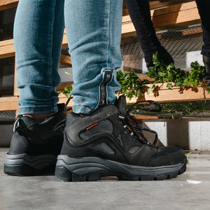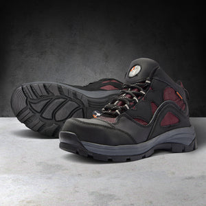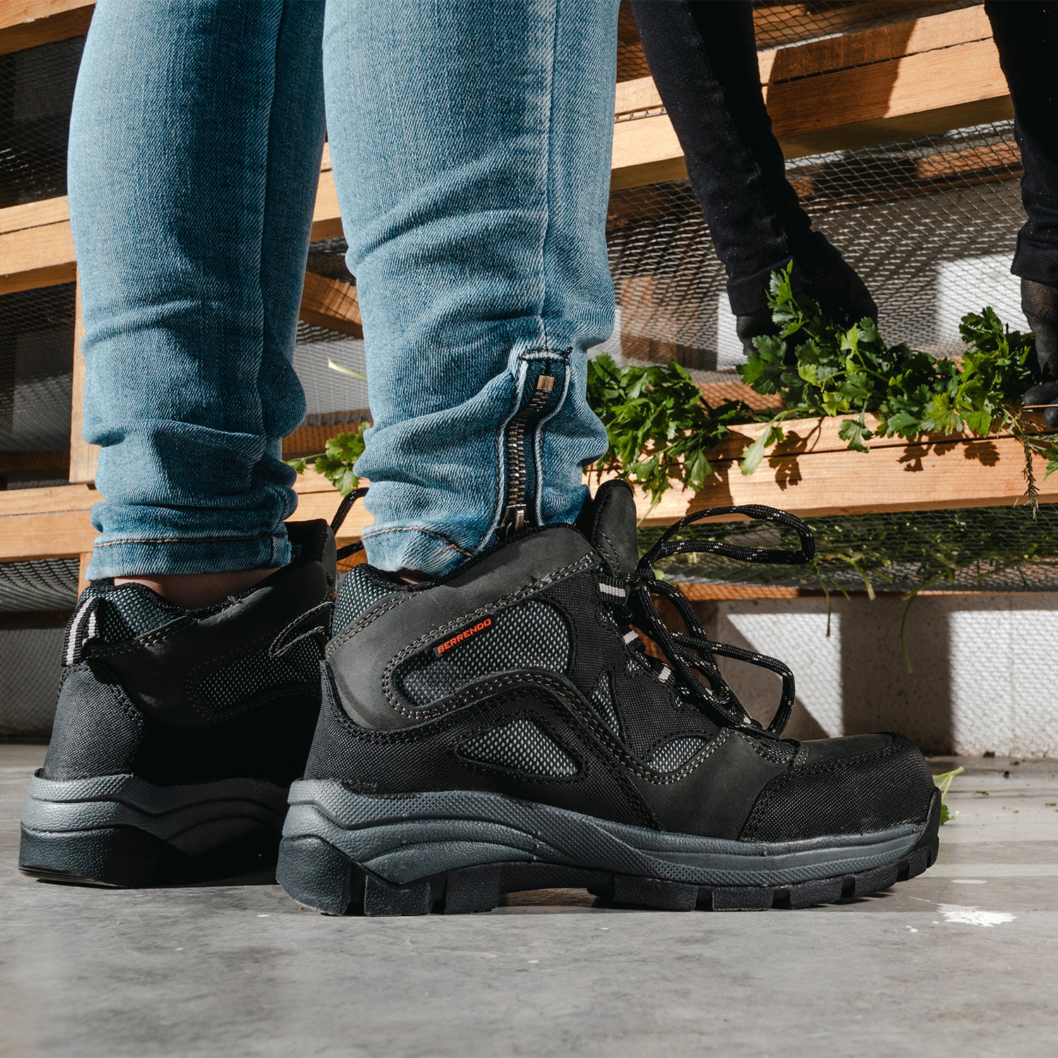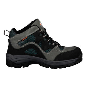 Calzado de seguridad tipo borceguí, con puntera de protección (PP). Especial para la anatomía del pie de la mujer. Es una bota ligera, flexible y cómoda, adecuada para largas jornadas de trabajo. Su suela está procesada en Phylon compuesta de E.V.A. con hule que la hace confortable, flexible y ligera, con muy buenas propiedades de absorción de impactos; El piso o patín de la suela es de hule vulcanizado más Nitrilo especial para áreas con derrama de aceites. Cuenta con un forro antibacterial con propiedades térmicas. Buena resistencia al calor y a la corrosión.