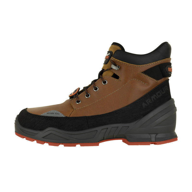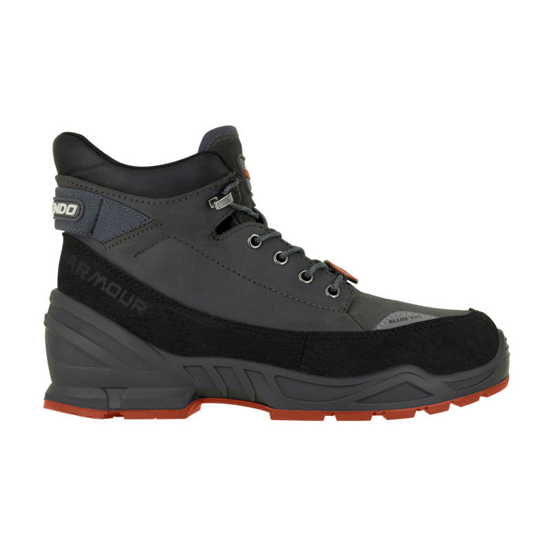 Bota de seguridad industrial con propiedad dieléctrica (D) y casco metálico (PP) de aluminio que cuenta con una construcción basada en una tecnología de última generación de inyección directa al corte por lo que lo hace un calzado de una sola pieza y permite lograr un buen desempeño para largas jornadas de trabajo. El modelo Armour® está hecho de materiales resistentes al desgarre y se adaptan al pie para un alto confort. Está compuesto por un forro transpirable e inhibe la proliferación de hongos y bacterias. Su suela de PU / Hule, resistente a los aceites, es antideslizante, antifatiga y cuenta con altura de suela en talón que brinda estabilidad y gran protección al pie. Este modelo es ideal para construcción, sector automotriz, alimenticio, almacenes, carga y descarga, eléctrica, iluminación, entre otros. Nota: no someterlo al sector metal mecánica, centro de maquinado, soldadura y lugares húmedos.