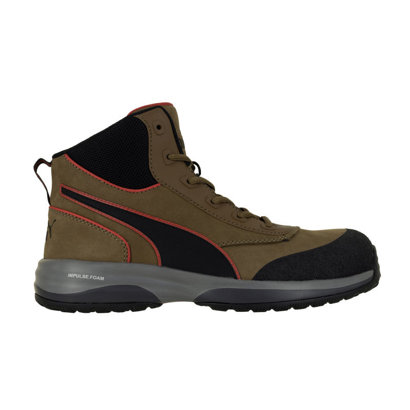 Calzado de seguridad tipo botín, dieléctrico (D) con puntera de protección (PP) metálica que protege los dedos de los pies contra impactos y compresión. Ofrece un diseño deportivo y alta tecnología en sus materiales. Compuesto por una suela de doble densidad resistente a temperaturas altas (300°C). Es un calzado, ultra ligero, flexible, durable y con excelente adaptación al pie, ideal para el trabajo rudo, adecuado para largas jornadas de trabajo, debido a sus buenas propiedades de absorción de impactos y resistencia al resbalamiento. Atributos: Sistema de soporte de talón de TPU para mayor estabilidad, forro funcional BreathActive que mantiene al pie fresco y seco inhibiendo la proliferación de hongos y bacterias, suela con tecnología IMPULSE.FOAM® que ofrece una amortiguación óptima.