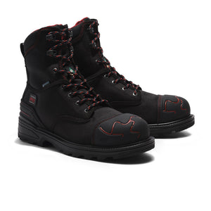 Botas industriales dieléctricas Timberland PRO MAGNITUDE® con puntera de protección (PP) no metálica. Cuenta con capas de refuerzo con tecnología ExoShock™ en la puntera de TPU y PU que distribuyen el impacto en un área más grande, mejorando la durabilidad y reduciendo el peso. Su plantilla, tiene tecnología Anti-Fatigue para absorción de impactos y retorno de energía. También cuenta con cuero impermeable de primera calidad y parte superior textil de doble tejido con una membrana interna para una máxima protección impermeable. Su forro transpirable absorbe la humedad con tratamiento antimicrobiano para controlar los olores, hechos de material ReBOTL™ que contiene al menos un 50% de plástico reciclado.