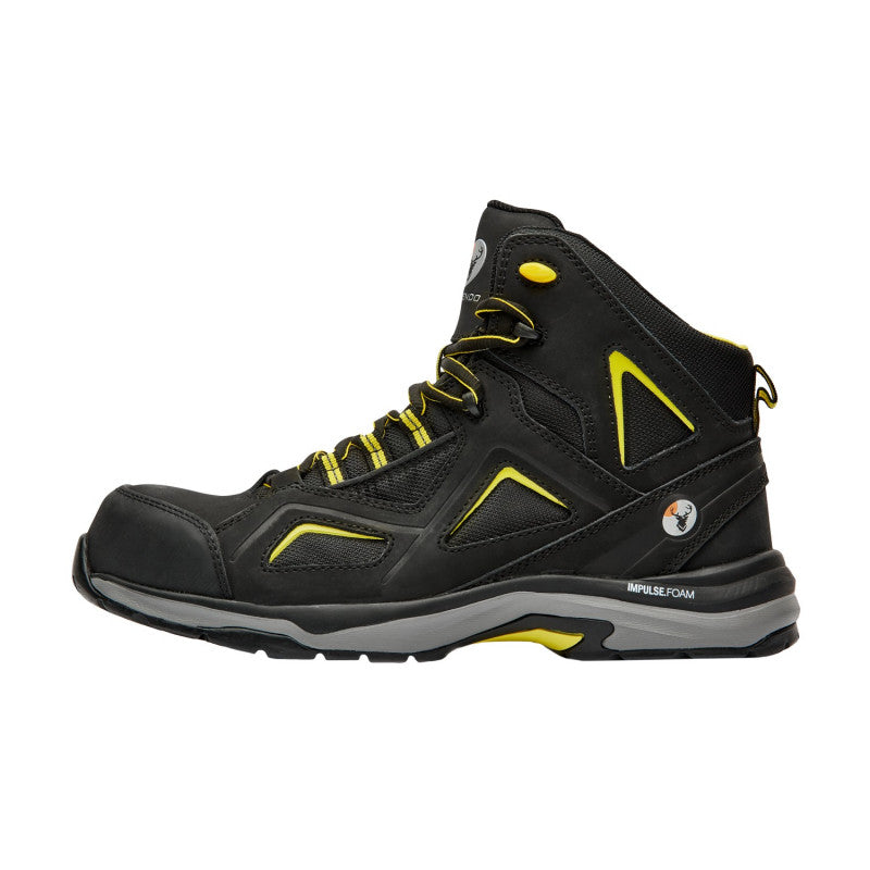 Calzado de seguridad tipo borceguí, estilo deportivo, con puntera de protección (PP) de fibra de vidrio. Suela antiderrapante con tecnología ANTIFATIGA, IMPULSE.FOAM, de doble impulso, que ofrece máxima amortiguación. Diseño deportivo, ultra liviano, lo que aporta flexibilidad y estabilidad, dando un mejor rendimiento. Resistente a la abrasión, forro transpirable y anti-microbiano para el control de olores.