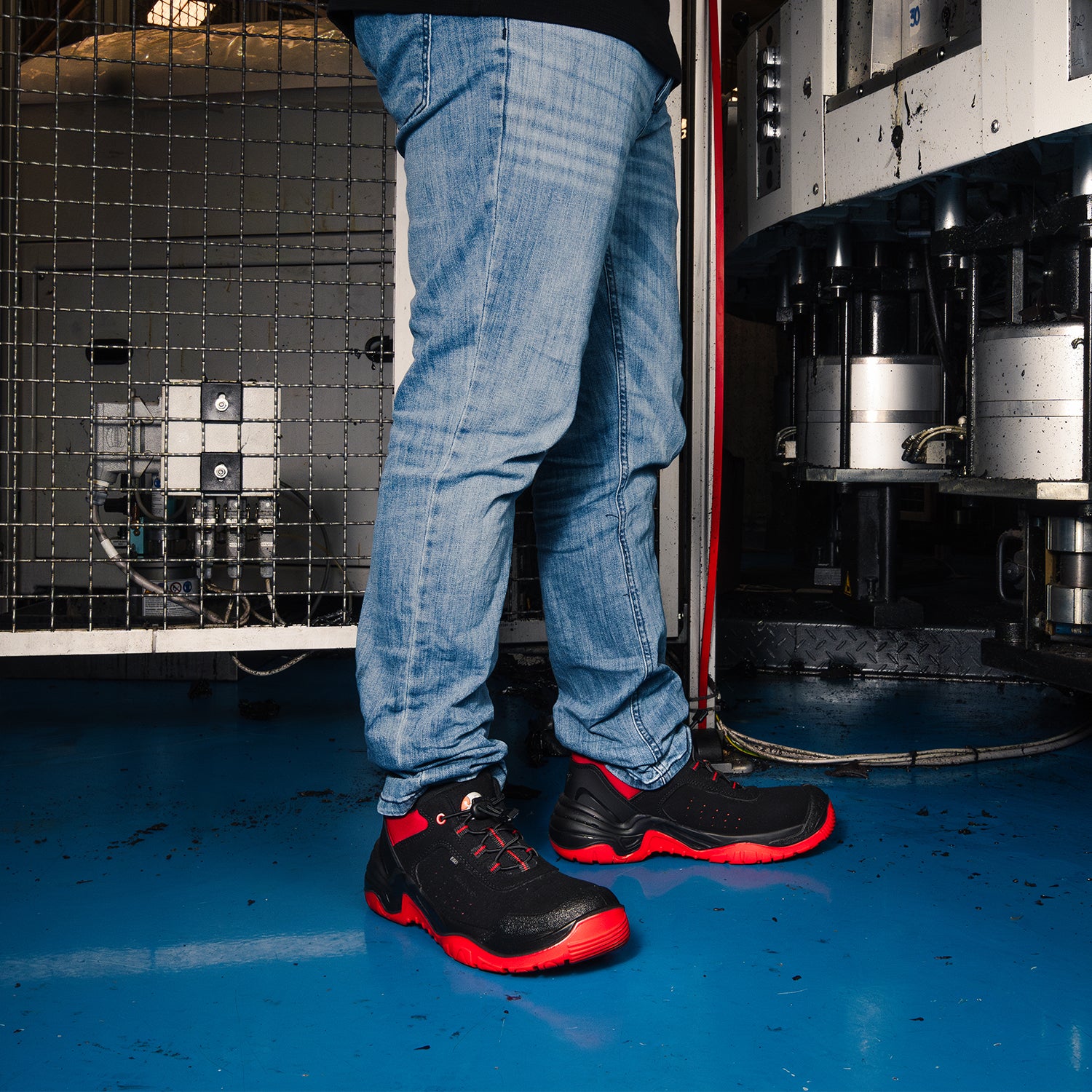 Calzado de seguridad antiestático (A) tipo choclo con puntera de protección biomecánica (PP). Reduce la acumulación de electricidad estática, disipándola del cuerpo al piso manteniendo una resistencia lo suficientemente alta para ofrecer al usuario una protección limitada contra un posible riesgo de choque eléctrico. Cuenta con suela antiderrapante de doble densidad PU/TPU, ideal para áreas con derrame de aceites. Cuenta con plantillas AddJust, dos plantillas independientes, que se colocan para personalizar el ajuste al calce del zapato, y sea ajustado perfectamente al pie de cada usuario. Sistema de atado rápido de cordones, tipo bungee. Ideal para cuando se trabaje en zonas clasificadas como atmósferas con nivel explosivo, como cabinas de pintado, trabajos dedicados al manejo de equipos que generen estática, ensamble de tarjetas electrónicas, ensamble de computadoras, etc.
