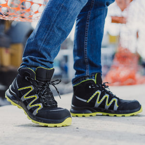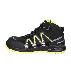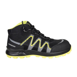 Calzado de seguridad tipo borceguí estilo deportivo con puntera de protección (PP) de fibra de vidrio. Diseño deportivo, flexible, cómodo y ultra ligero, adecuado para largas jornadas de trabajo. Compuesto por una suela Cross de PU-HULE, resistente a aceites, al calor y con buenas propiedades de absorción de impacto. Forro textil con buenas proporciones de absorción y des absorción de humedad y plantilla de confort que reduce la fatiga y es lavable.