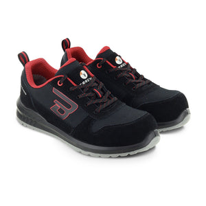 Tenis de seguridad con puntera de protección (PP) de fibra de vidrio y propiedad dieléctrica (D). Por su diseño deportivo, flexible y ligero es excelente para industrias como Automotriz (armadoras), almacenes, transporte, logística, áreas de producción limpias. Este hecho de Piel Gamuza / Textil, lo que contiene excelente traspiración y es resistente a la abrasión. Cuenta con una suela de Poliuretano Bi-Densidad que brinda estabilidad, es antiderrapante en ambientes secos y tiene buena absorción al impacto. Su plantilla extraíble y lavable, es antifatiga y confortable.