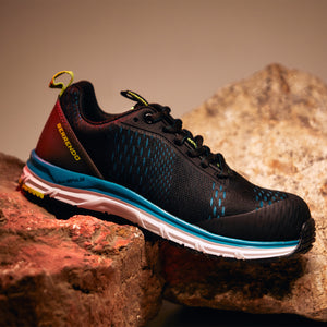 Calzado de seguridad tipo tenis Dieléctrico (D) con puntera de protección (PP) de fibra de vidrio para mujer. Diseño deportivo, flexible, cómodo y ultra ligero, adecuado para largas jornadas de trabajo. Suela antideslizante con tecnología antifatiga, IMPULSE.FOAM, de doble impulso, que ofrece máxima amortiguación. Resistente a la abrasión, con injerto de poliuretano en la punta, para evitar el desgaste. Forro transpirable y anti-microbiano para el control de olores. Plantilla transpirable.