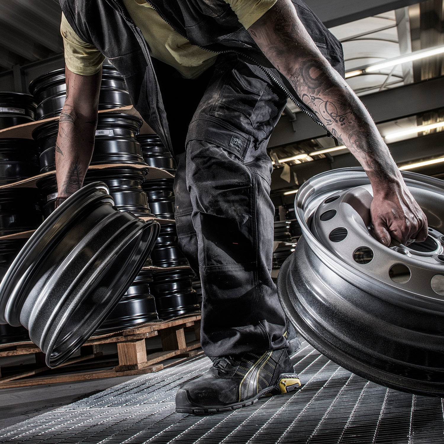 Calzado de seguridad tipo choclo para hombre, con puntera de protección de aluminio (PP). Ofrece un diseño deportivo basado en calzado de fútbol. Es un calzado ligero, durable, en la suela cuenta con un injerto de EVA, para mayor absorción de impactos. Atributos: Forro transpirable - antibacterial, plantilla de óptima amortiguación y casco de aluminio más espacioso para un ajuste más cómodo.