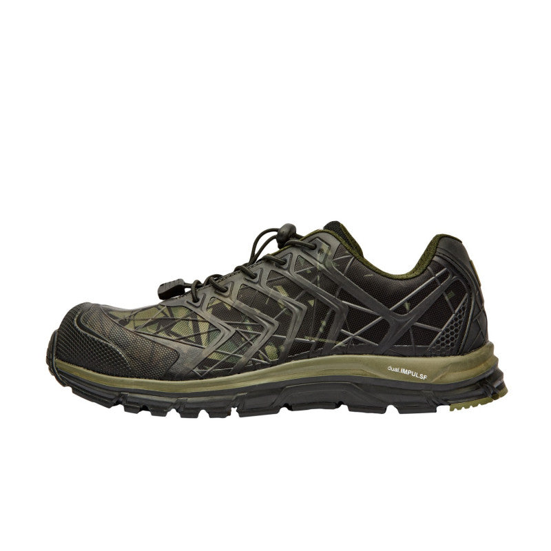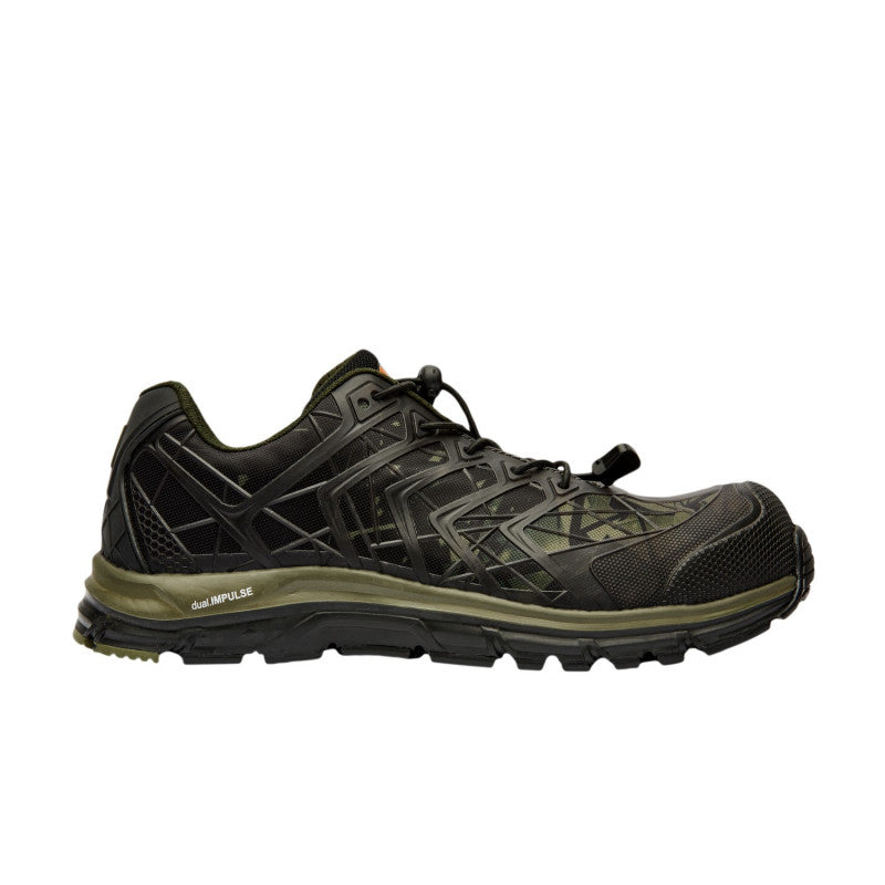Calzado de seguridad tipo tenis con puntera de protección (PP) de fibra de vidrio. Diseño deportivo, flexible, cómodo y ultra ligero, adecuado para largas jornadas de trabajo. Suela antideslizante con tecnología antifatiga, IMPULSE.FOAM, de doble impulso, que ofrece máxima amortiguación. Resistente a la abrasión, con injerto de poliuretano en la punta, para evitar el desgaste. Forro transpirable y anti-microbiano para el control de olores. Plantilla transpirable. Sistema de atado rápido de cordones, tipo bungee.